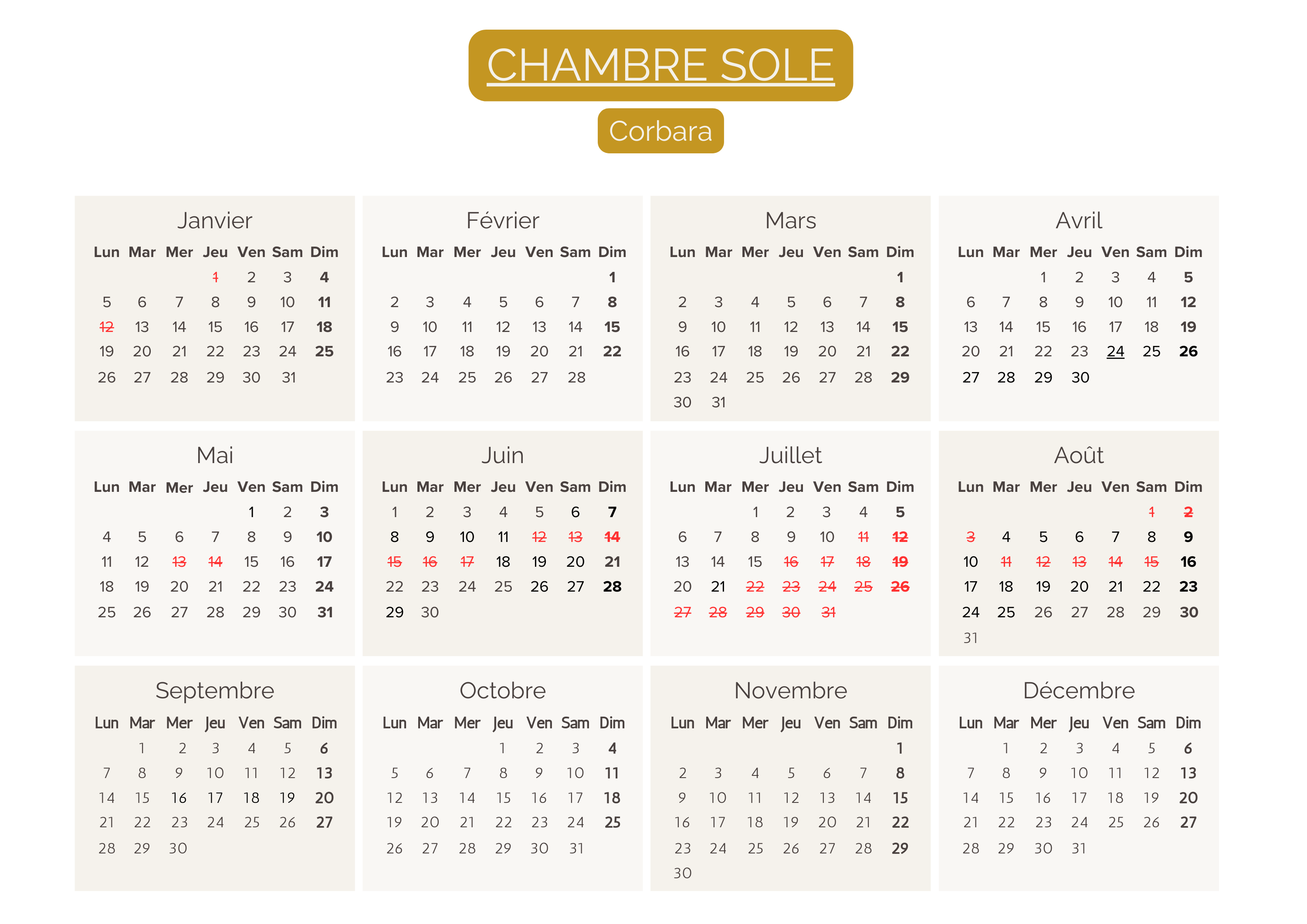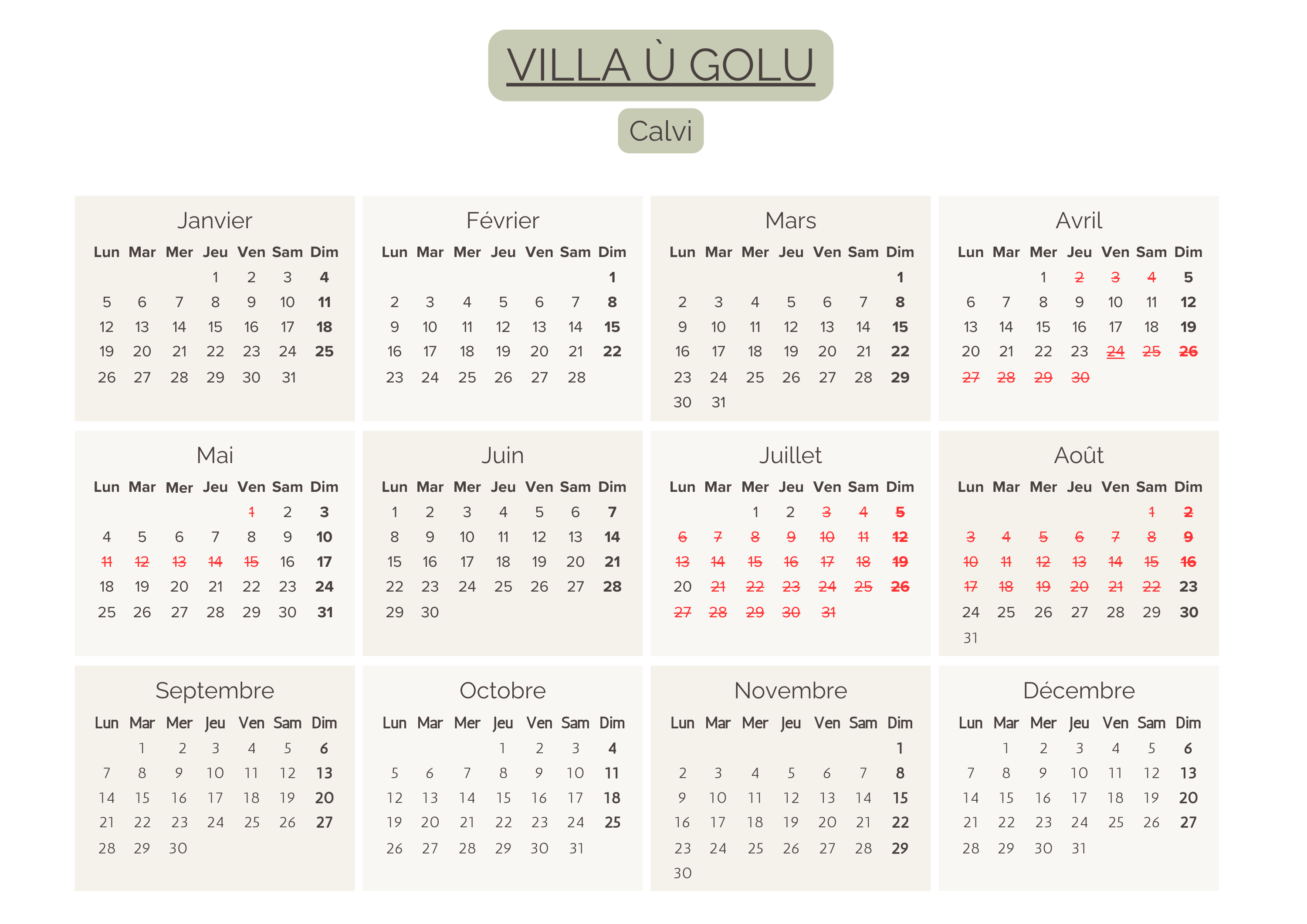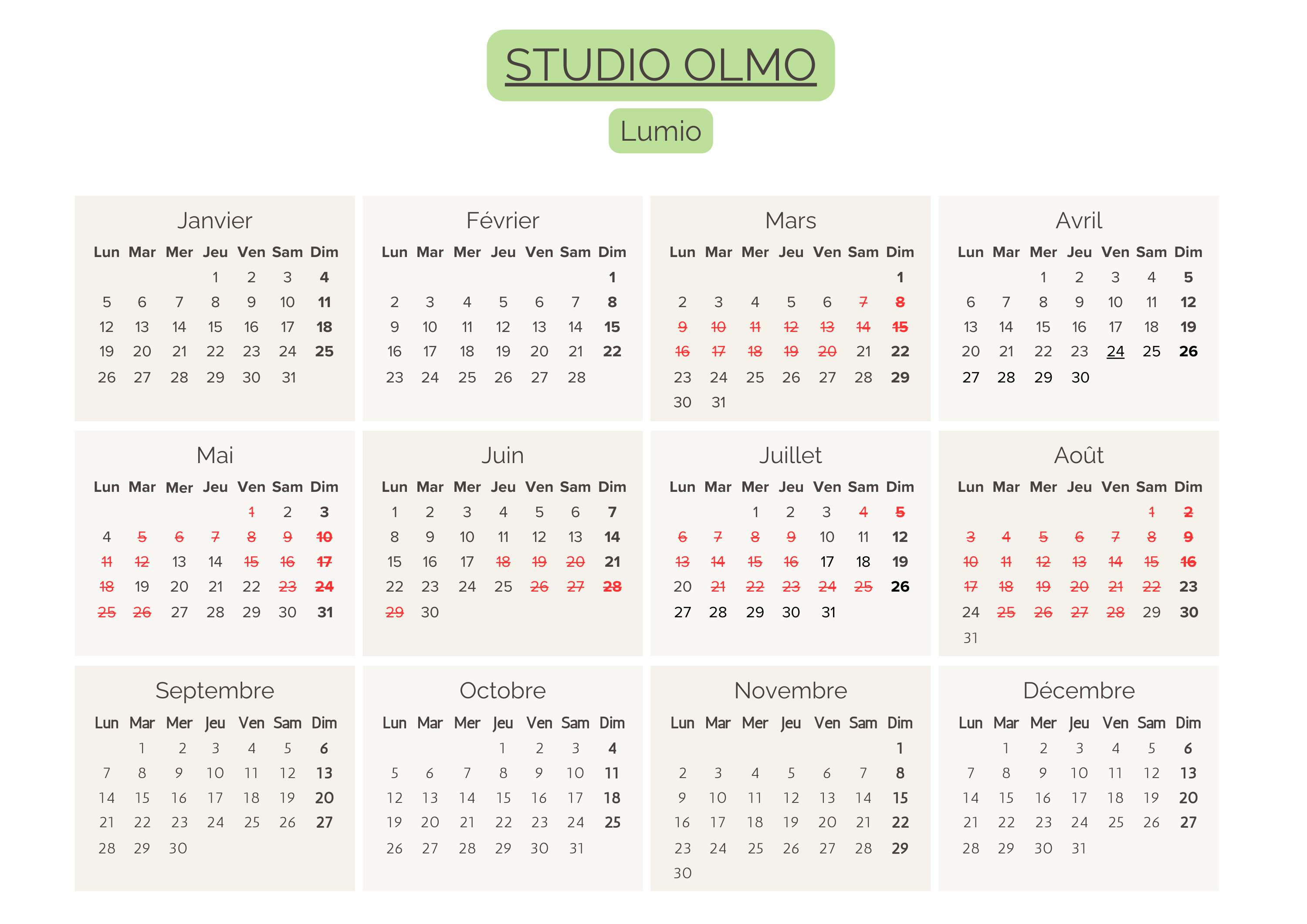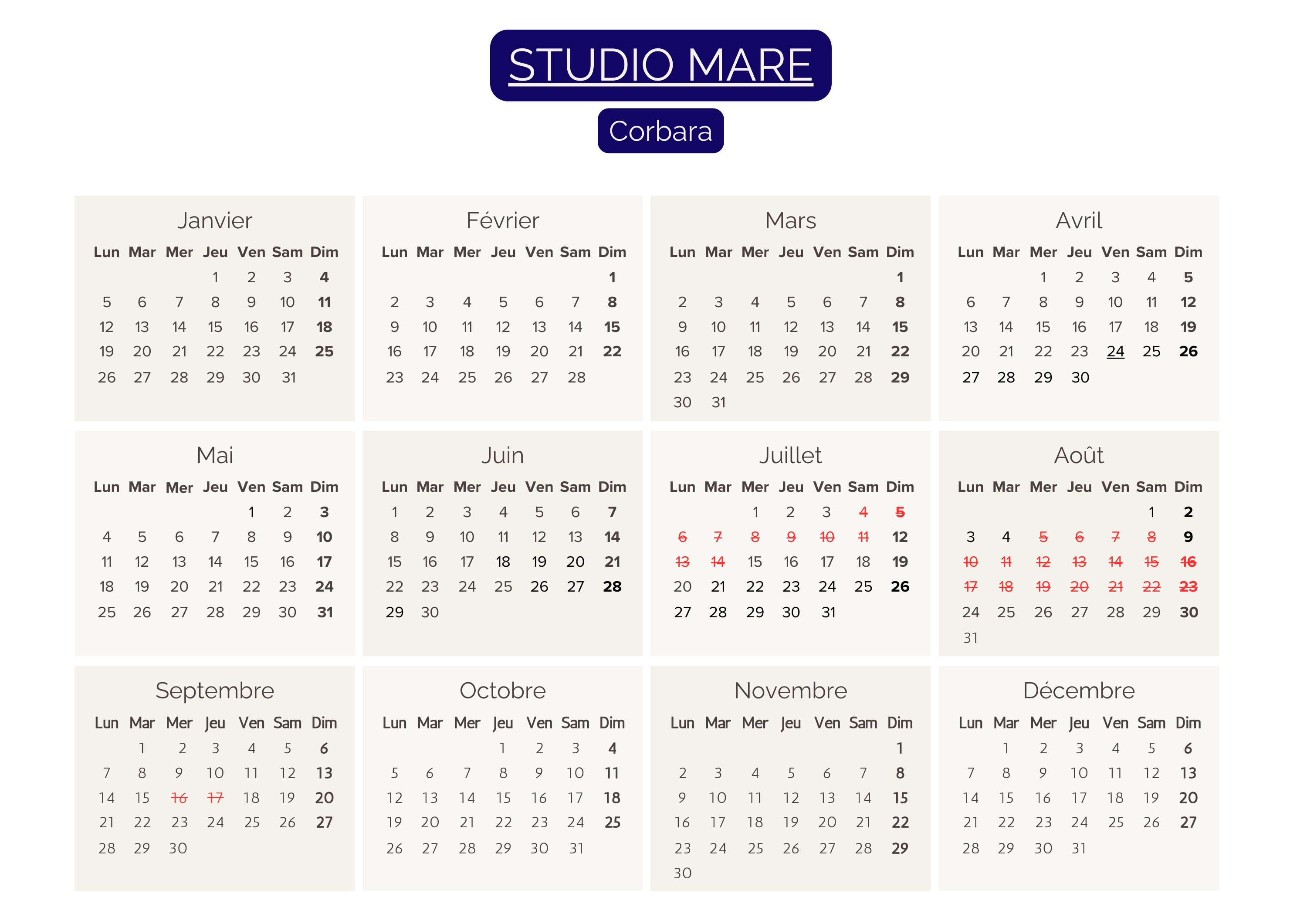 Calendriers 2026